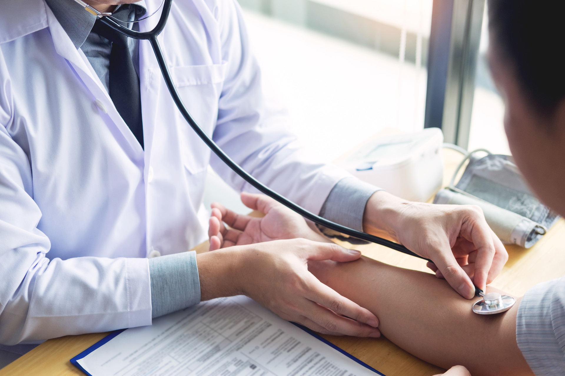 혈관 상태를 평가하기 위해 가장 먼저 시행되는 검사로, 환자의 혈관 부위에서 부종, 열감, 피부색 변화 등을 관찰합니다. 손으로 혈관을 만져 떨림(진동)이 정상적으로 느껴지는지 확인하며, 청진기를 사용해 혈류음을 들음으로써 혈관의 이상 여부를 평가합니다.