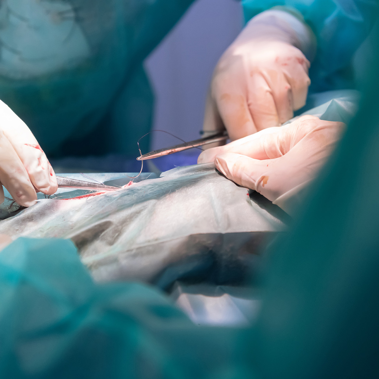 2. 케모포트 삽입 자리에 4~5cm 절개 후 피부 아래에 케모포트가 들어갈 공간을 만들어 줍니다.