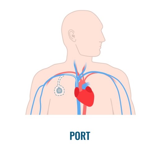 케모포트는 항암제를 주기적으로 안전하게 투여하기 위해 주로 가슴 부위의 피부 아래에 삽입되는 소형 장치입니다.