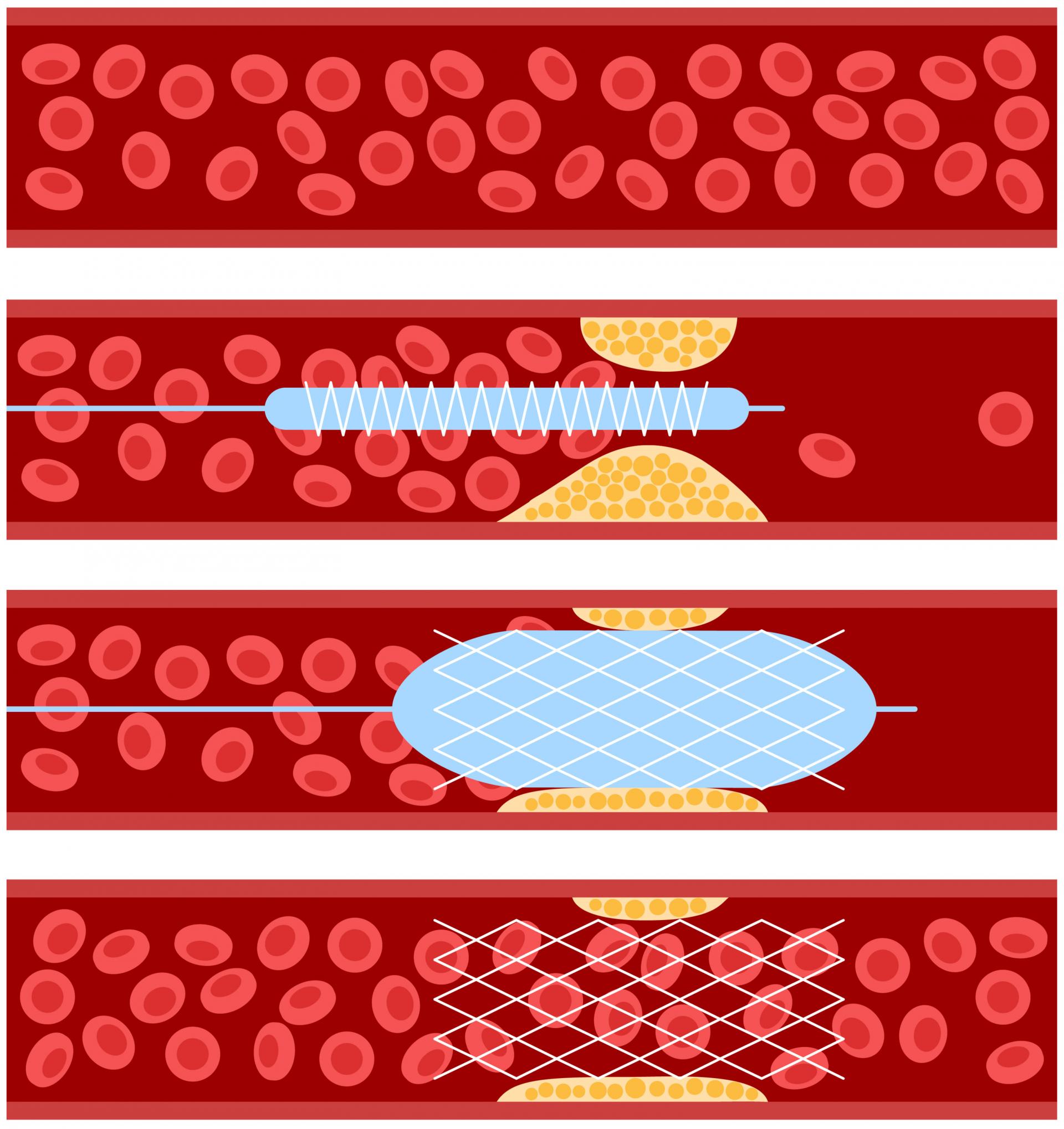 스텐트 삽입은 협착되거나 막힌 혈관 또는 다른 통로(요관, 담도 등)를 넓히고,